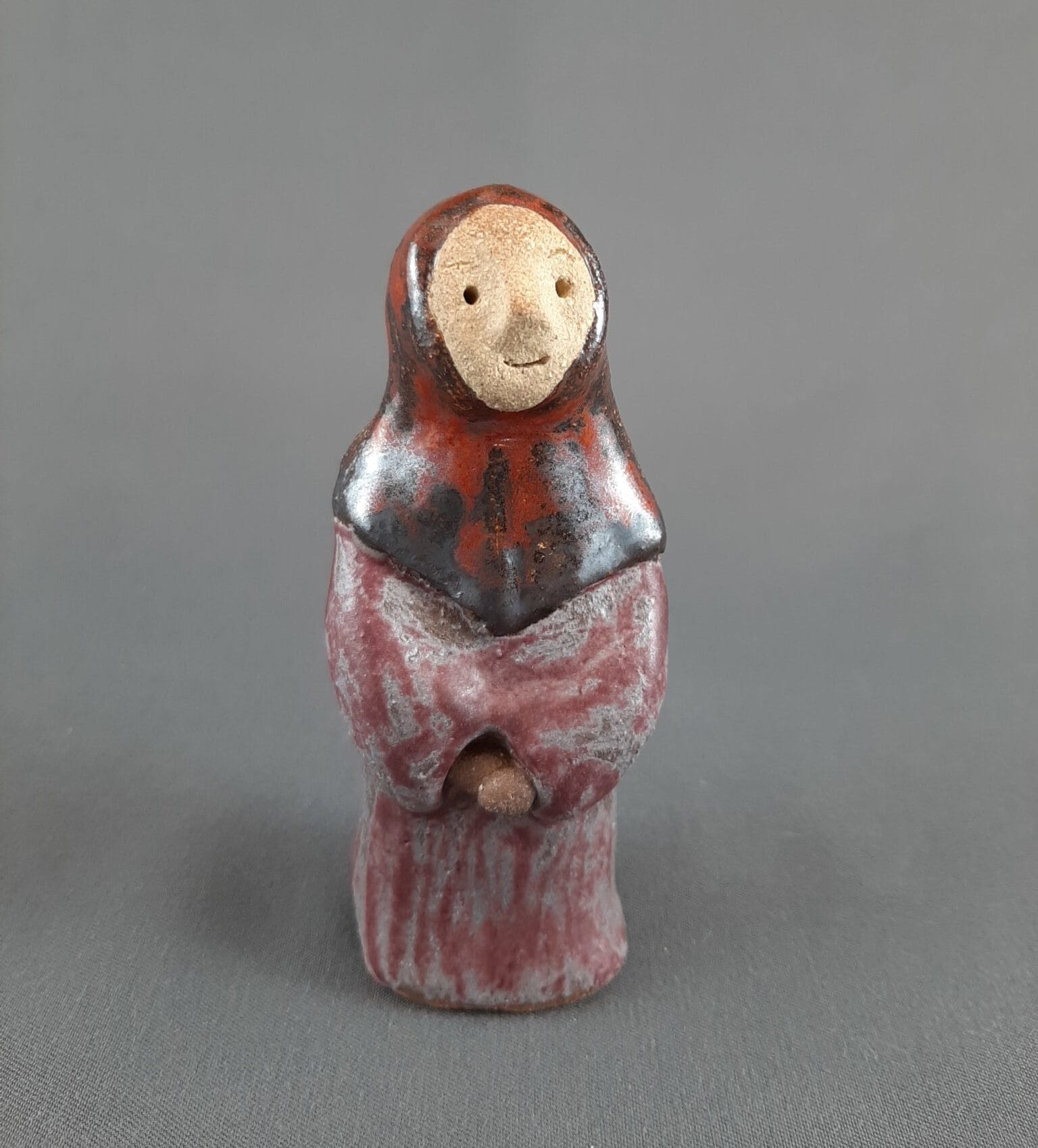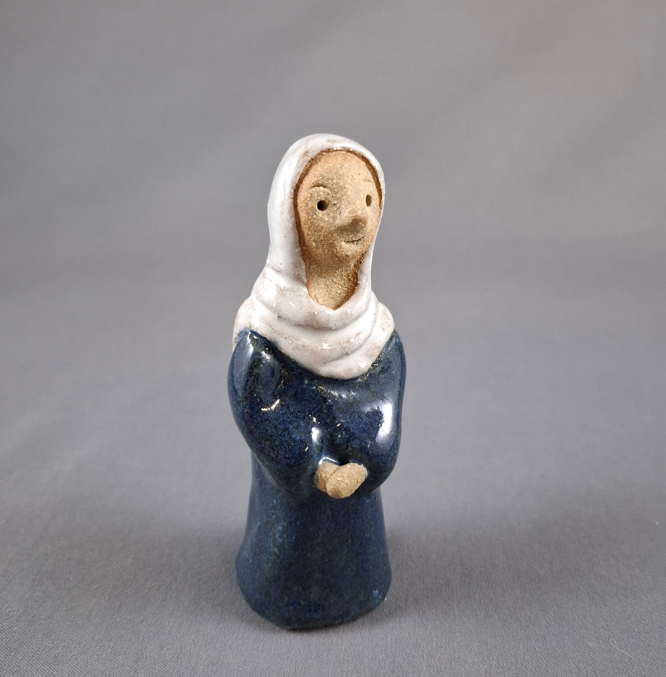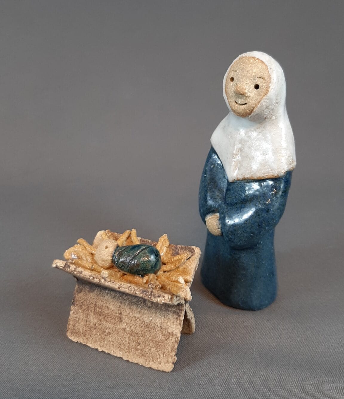 Onnellinen Maria hymyilee kainosti seimen äärellä.