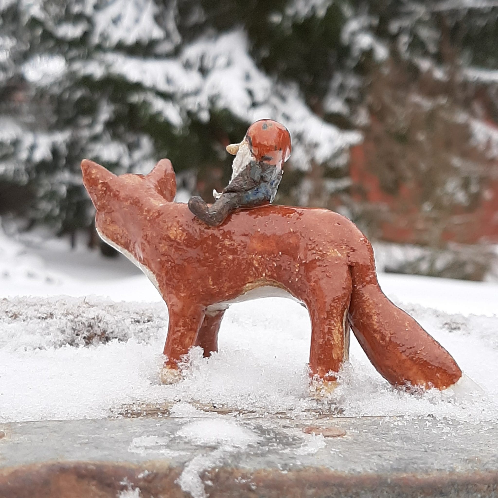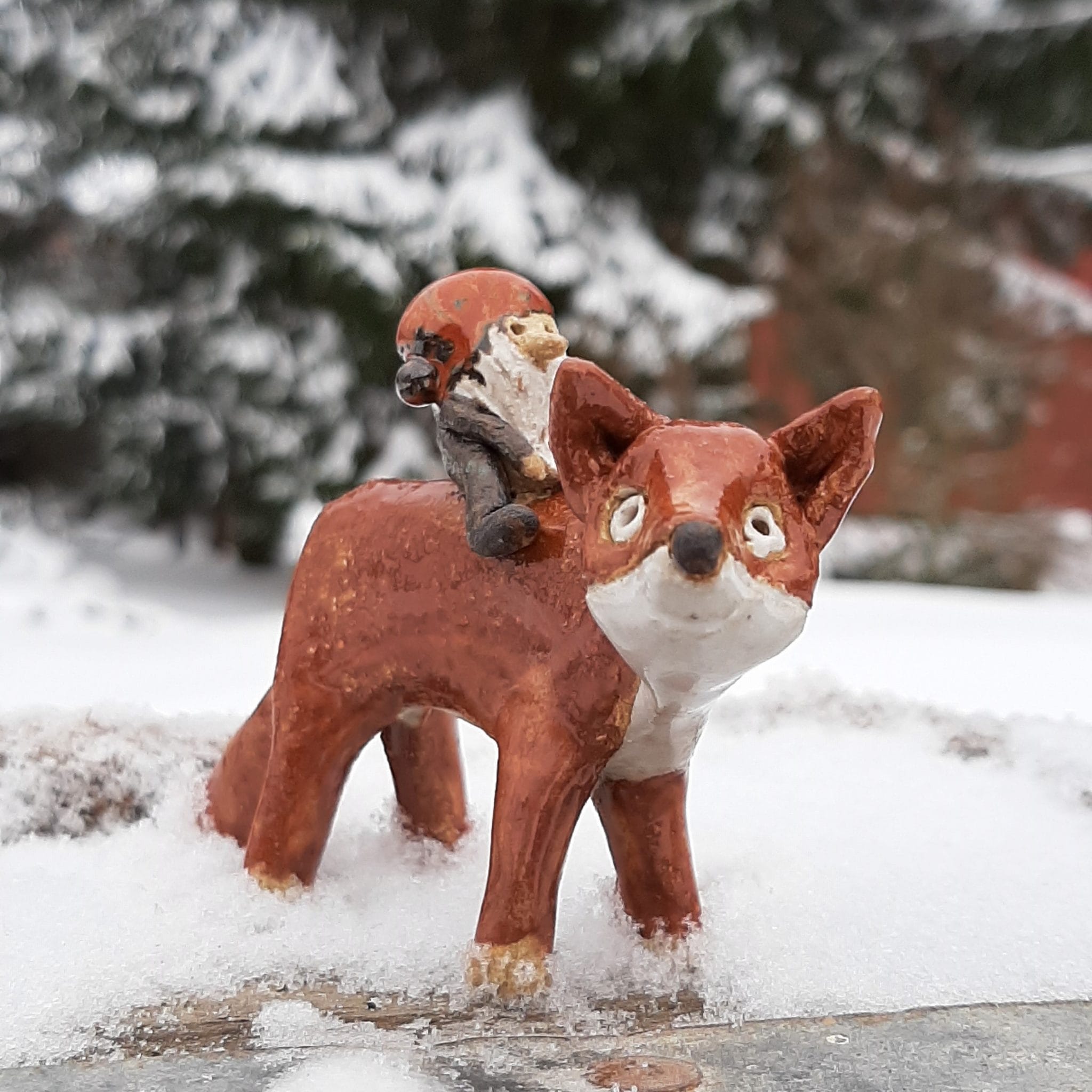 Tonttulasta tuttu kettu on saanut pikkuriikkisen tontun matkustajaksi.